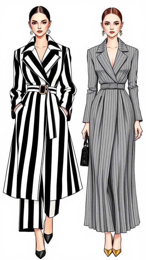 خطوط عمودی از مؤثرترین خطوط در طراحی لباس هستند. این خطوط باعث میشوند اندام بلندتر و کشیدهتر به نظر برسد.