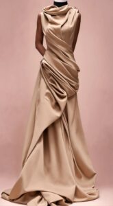 هنگامی که طراح از پارچهای با دراپ نرم استفاده میکند، حس لطافت، سیالیت و ظرافت به بیننده منتقل میشود. در حالیکه دراپ خشکتر حس قدرت، فرم و ساختار را القا میکند.